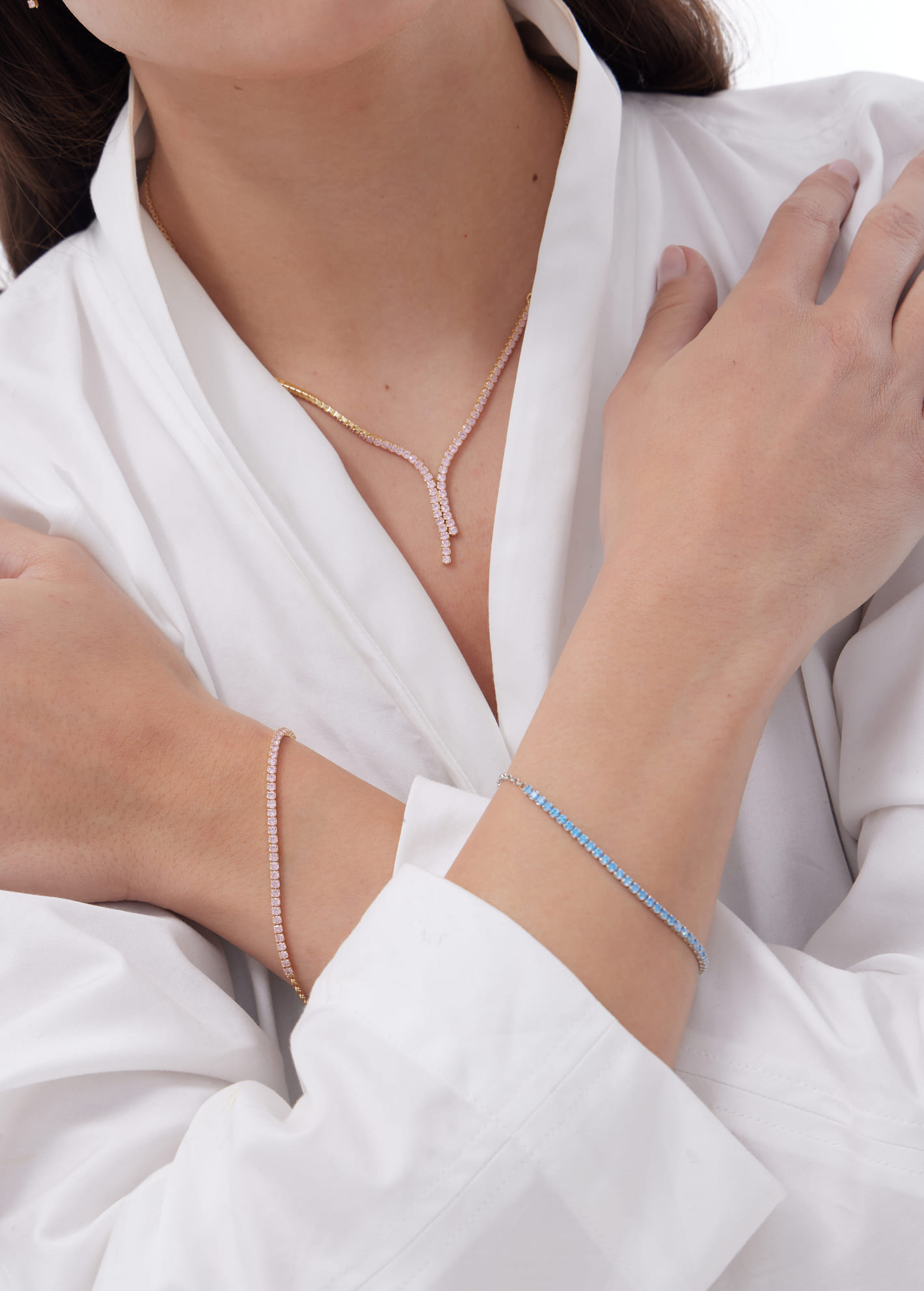 Plata de ley chapada en rodio, oro de 18 quilates u oro rosa de 18 quilates.